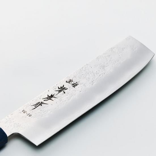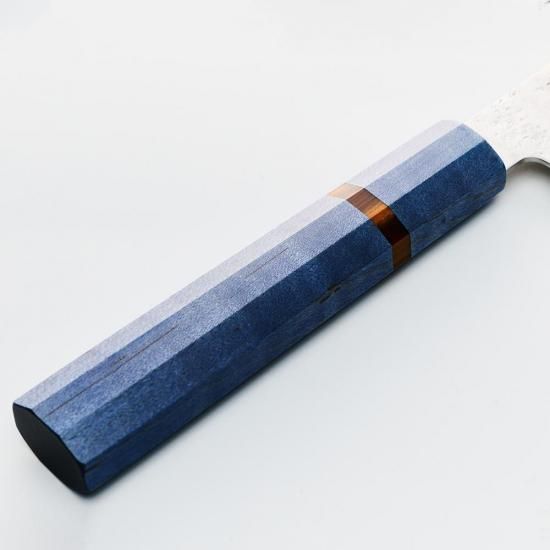 堺孝行 和菜切 160mm<VG10> 梨地藍スタビライズドウッド八角橙スペーサー柄
